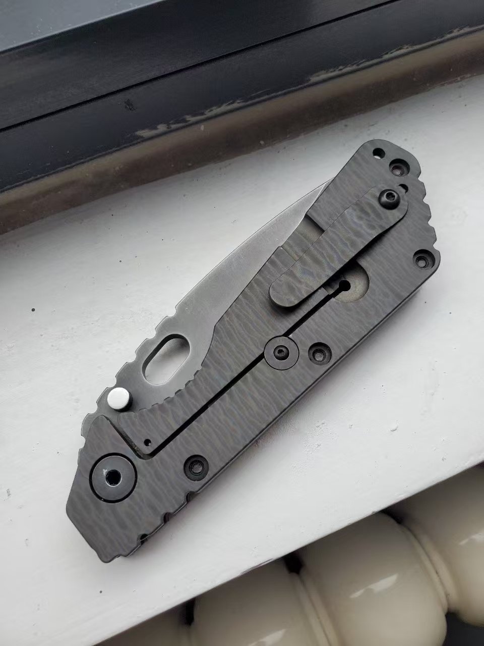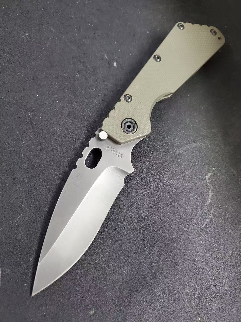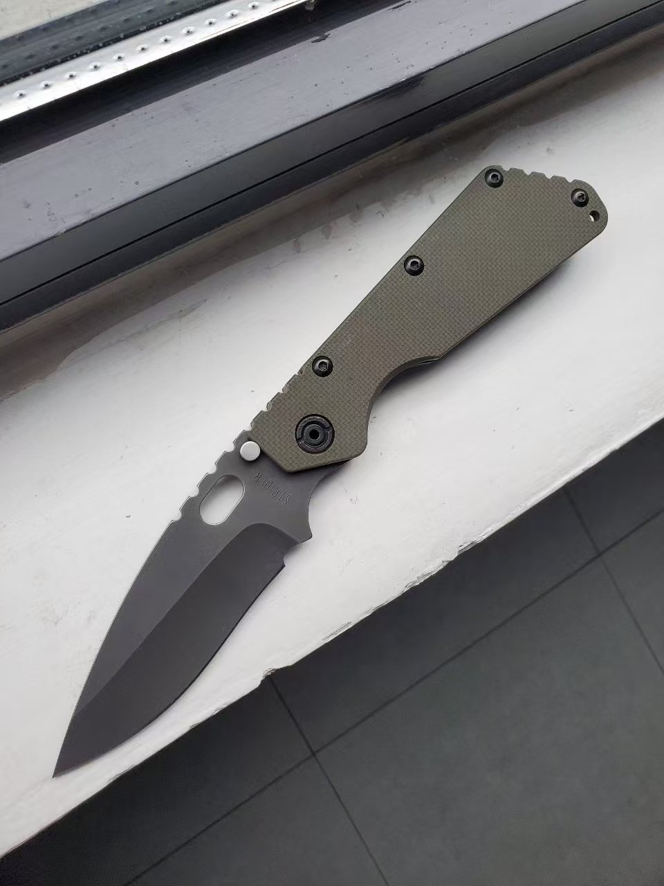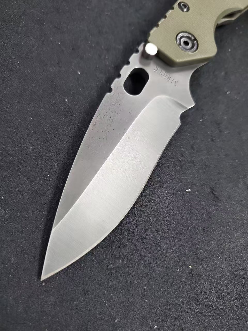 9月第二贴,稀有老版 挺进者XL 反曲凹磨黑色涂层刃,军绿色g10柄