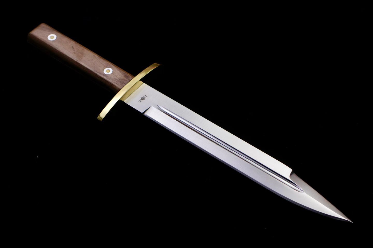 这是一把新款战斗匕首,木柄,单刃,双面血线, 配有原厂特制牛皮刀套.整体坚固.轻便绝佳的多用途刀。
